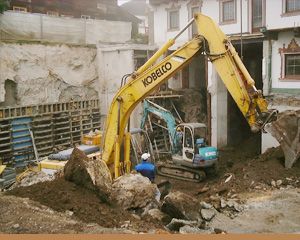 1972 wurde eine zweistöckige Tiefgarage mit Hebebühne für 15 Autos gebaut.